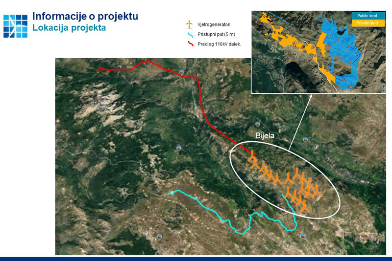 Uvažavajući komentare zainteresovanih strana, izvršene su izmjene dizajna dalekovoda za vjetro park Bijela. Postojeće rješenje uključuje izmještanje trase u području Duži i Brezana. Takođe, uz poštovanje tehničkih ograničenja, završni dio trase dalekovoda u dužini od oko 580 m prema tački priključenja projektovan je kao podzemni kabl.